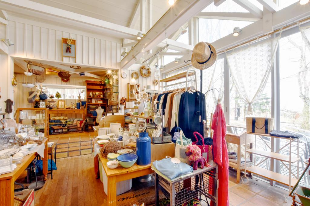 雑貨コーナーは、ドライフラワーのアレンジメントやこだわりの雑貨・洋服などが充実し、ギフトにもぴったりな品揃え。