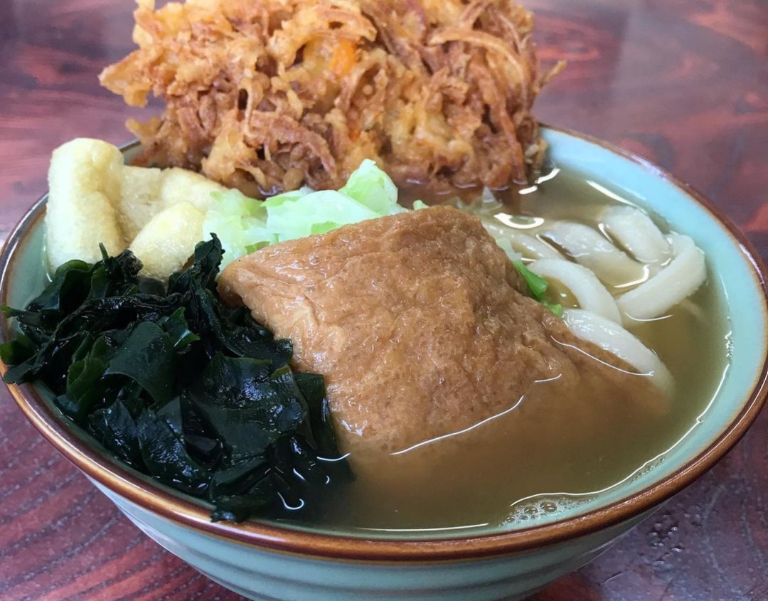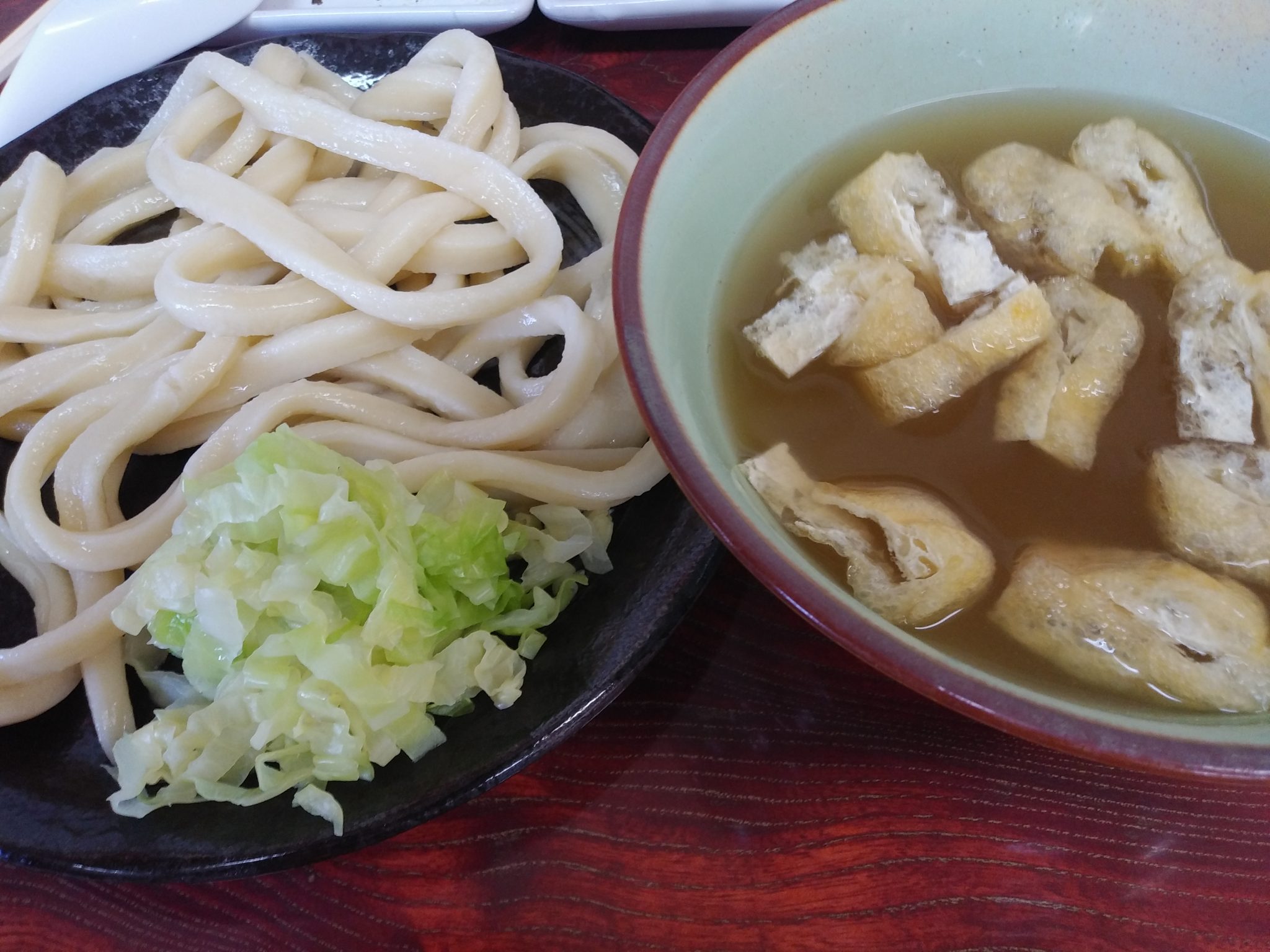 ・ムサシうどん(キャベツ・わかめ・きつね・天ぷら入り) 500円 ・冷しうどん 400円 ・トッピング 50円~ |