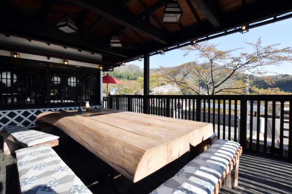 荒川ダムの湖畔沿いにあり、四季を感じる癒しの空間でお食事を楽しめる。