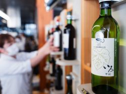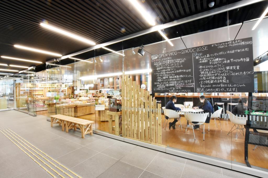 山梨の魅力を発信するアンテナショップ、まるごとやまなし館!人気のお土産購入や、カフェスペースで県産の食材を使った食事やドリンク、お酒を楽しめる。