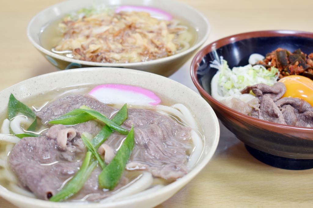 ・釜揚げ天うどん 380円 ・天ぷらうどん 480円 ・牛卵うどん(小辛) 630円 |