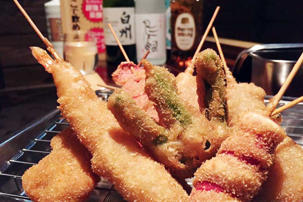 サクッとした食感が人気の串かつは衣・油・ソースにこだわりさっぱりといただける。