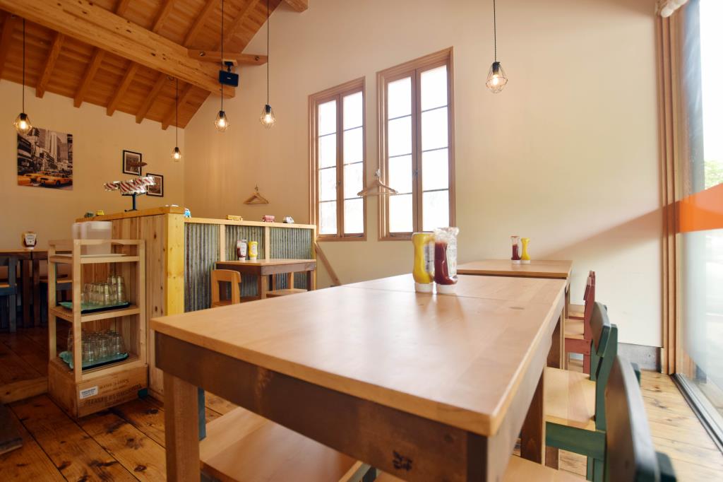 木の温もりが感じられる明るい店内はアメリカンな雰囲気♪