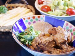 優しい店主がひとつひとつ手作りした牛すじや手羽元の煮込み料理はホロホロと口の中で崩れる。