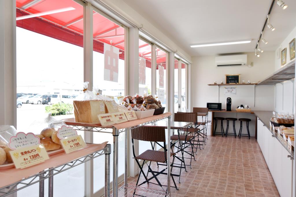 富士山酵母で仕込んだ香り豊かなバケットや、小麦の風味を大切にしたミニ食パンなど優しい味のパンが並ぶ可愛らしいパン屋。