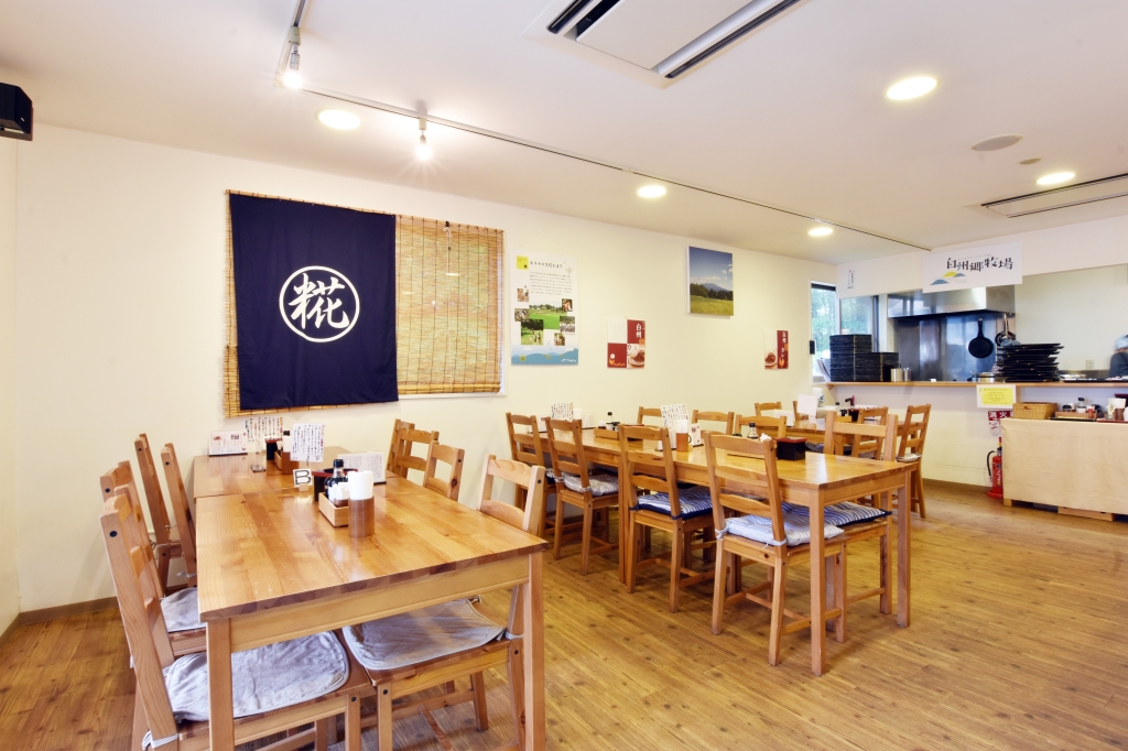 八ヶ岳アウトレット内で白州郷牧場の新鮮な食材を味わうことのできるレストラン。