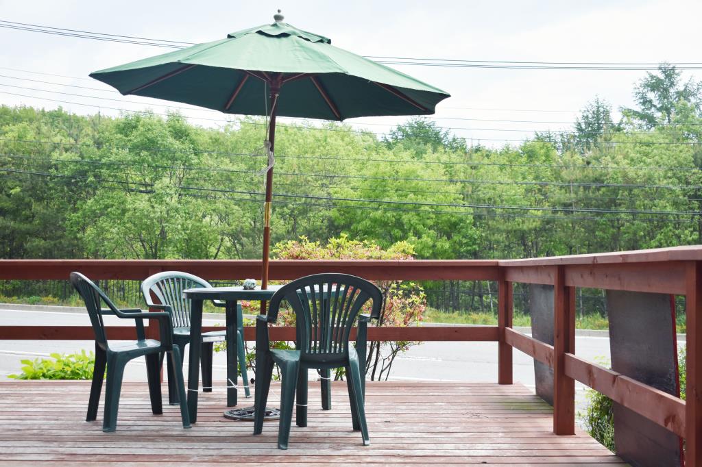 アイスを買った後は緑に囲まれたテラス席でゆっくりしたひとときを・・・