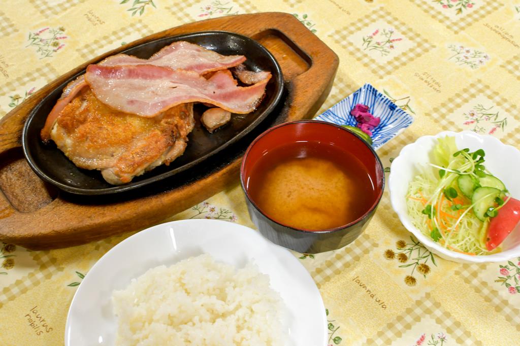 ・肉野菜炒め ライス 770円 ・しょうが焼 ライス 770円 ・チキンベーコン焼 ライス 1,000円 ・ラーメン 500円 ※全て税込 |