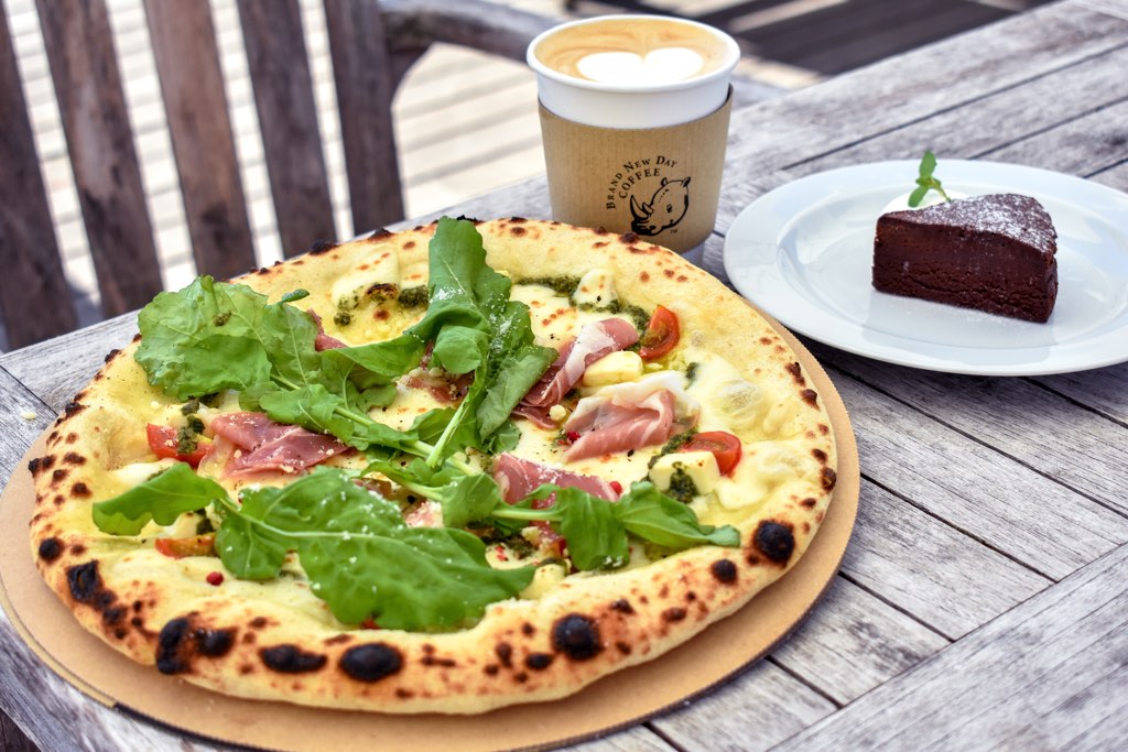 河口湖の富士大石ハナテラス内にある美味しいコーヒーや本格ナポリピッツァが堪能できるカフェ。