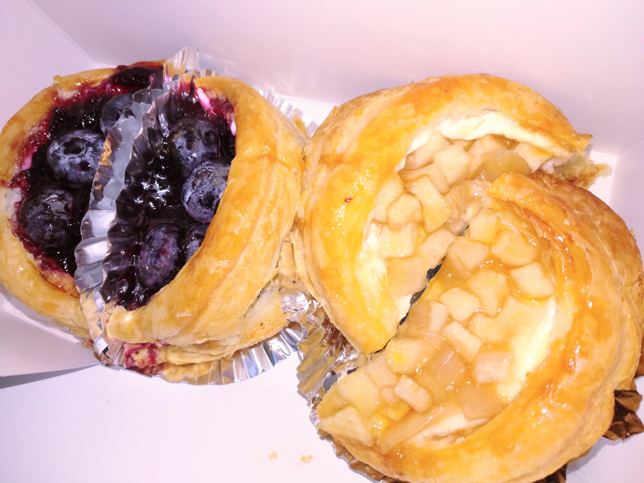 爽やかなパイで、とてもボリュームがあるので、スイーツはもちろん、軽食としてもいけちゃいます。今はイートインはお休みのため、ふたつに切ってもらい、車でいただきました。