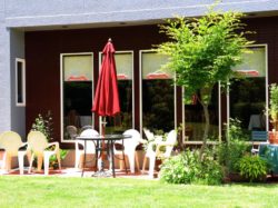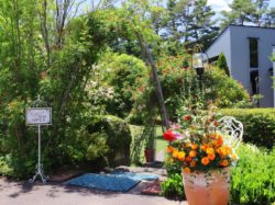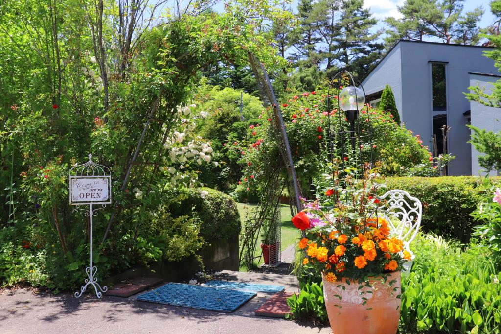 忍野村にある、可愛らしいガーデンが印象的なレストラン。