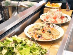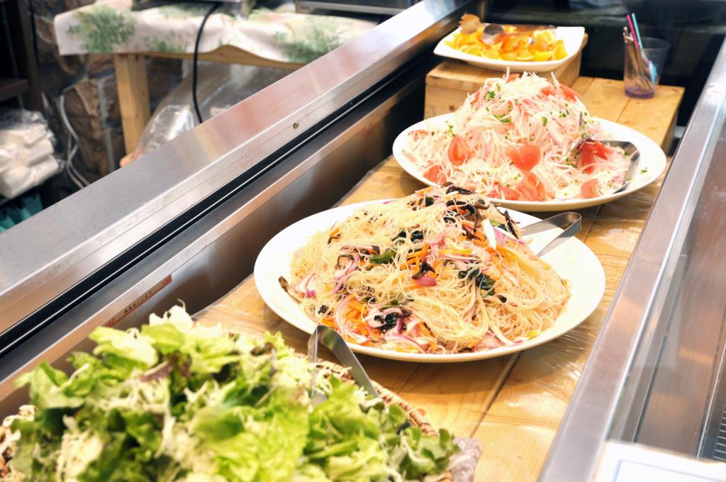 旬の地場野菜を使ったサラダバーがついた日替わりランチが大人気。
