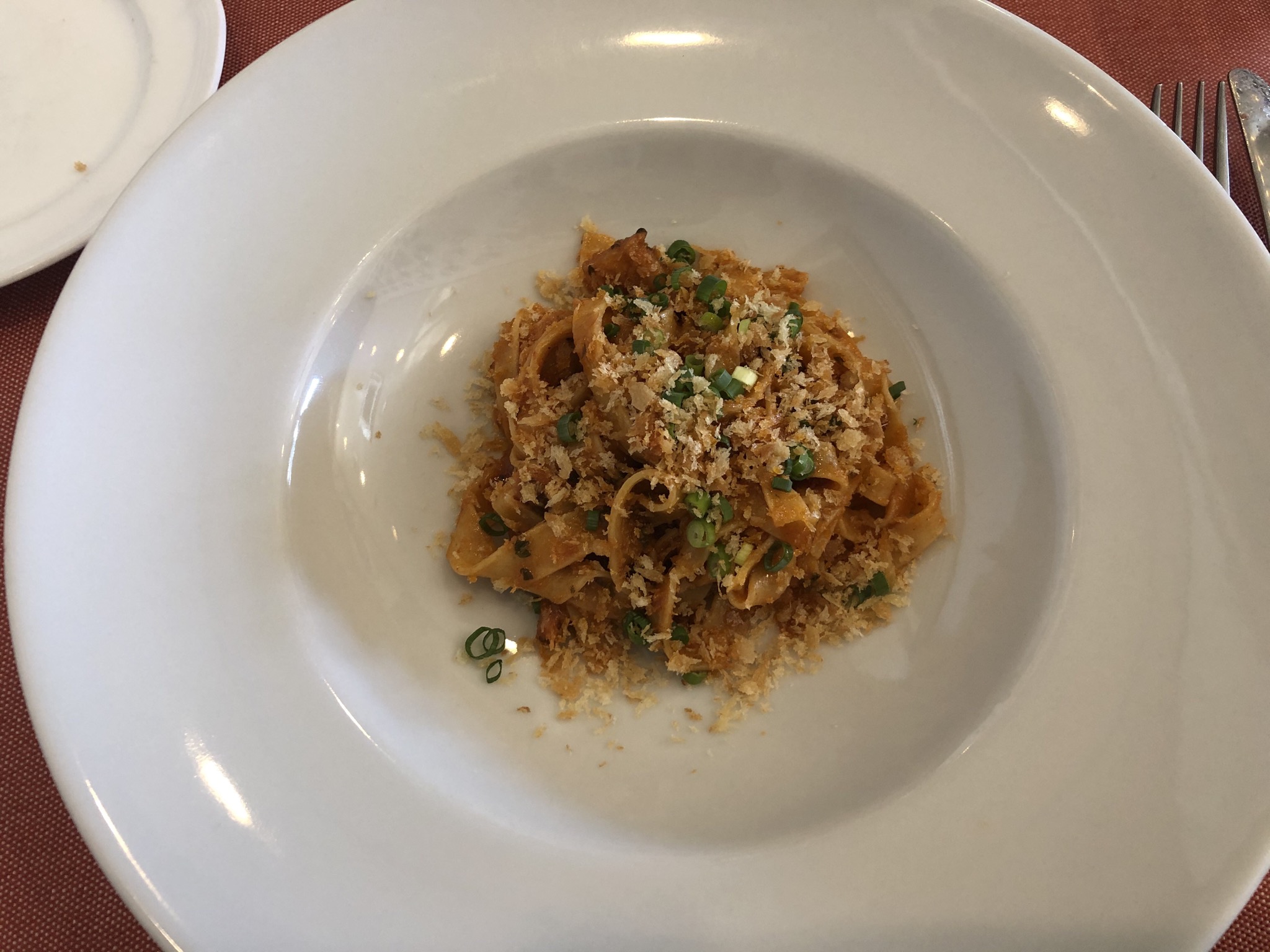 ディナーでワインを飲んで5000円以下のコスパ最高のイタリアンです。コースがプリフィクスで、前菜からパスタ、メインまで選択肢が多くて二人で違うものでシェアしても迷う位です。水牛モッツァレラ、タコのカルパッチョ、生ハムとキノコの手打ちパスタ、イカ墨の手打ちタリアテッレ、鴨モモ肉のコンフィ、子羊のローストをオーダーしましたが、どれも最高でボリュームも満点。自家製パンにドルチェミストにコーヒーもつきお気に入りのお店になりました。