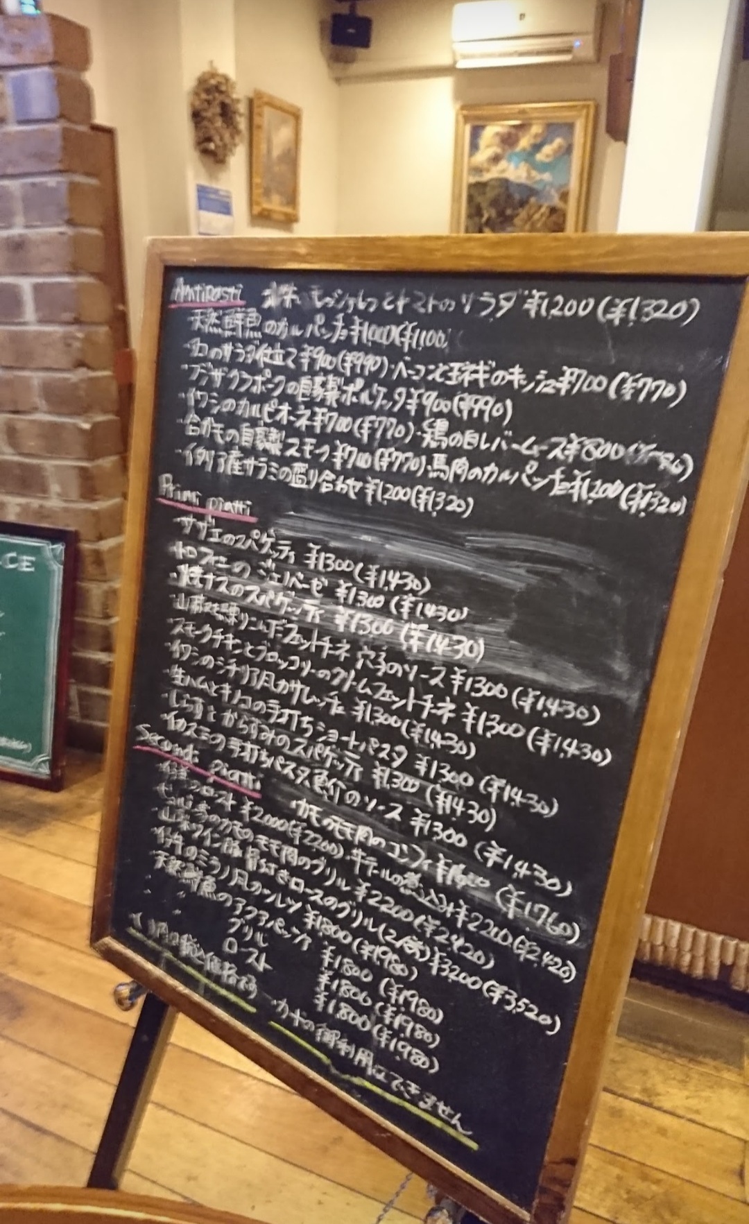 ・お昼のメニューA 2,750円 (前菜・スープ・好きなパスタ1品・パン・デザート・コーヒー) ・タコのサラダ仕立て 990円 ・自家製ソーセージのグリル 1,100円 ・秋刀魚のシチリア風スパゲッティ 1,430円 ・夜のおまかせコース 6,600円※前日までに要予約 |