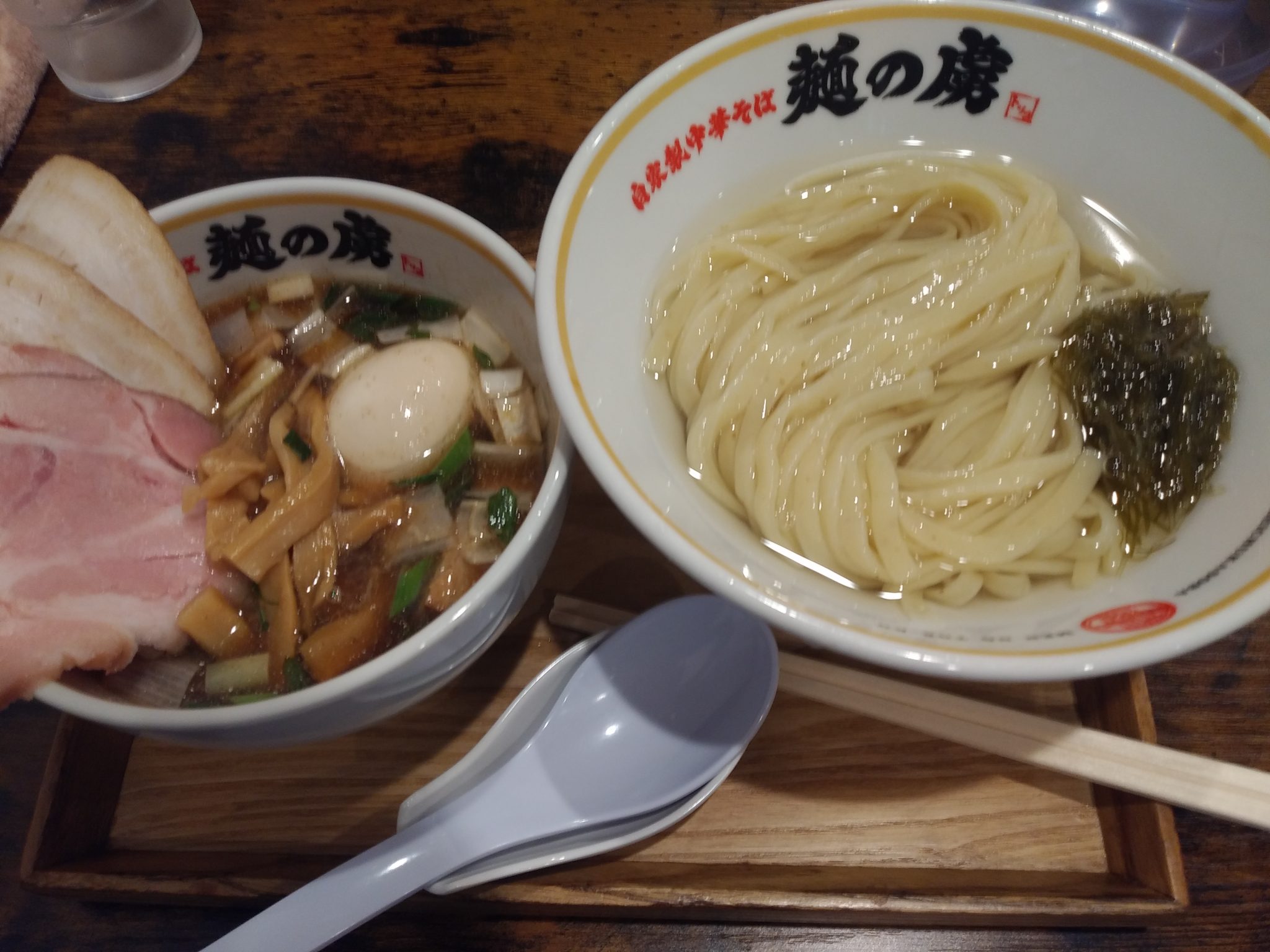 つけ汁には、ゴロゴロと大きめの叉焼が入っていて、脂は多めながらしつこくなく、美味しかったです。