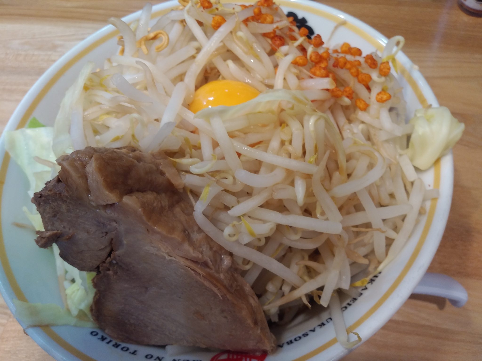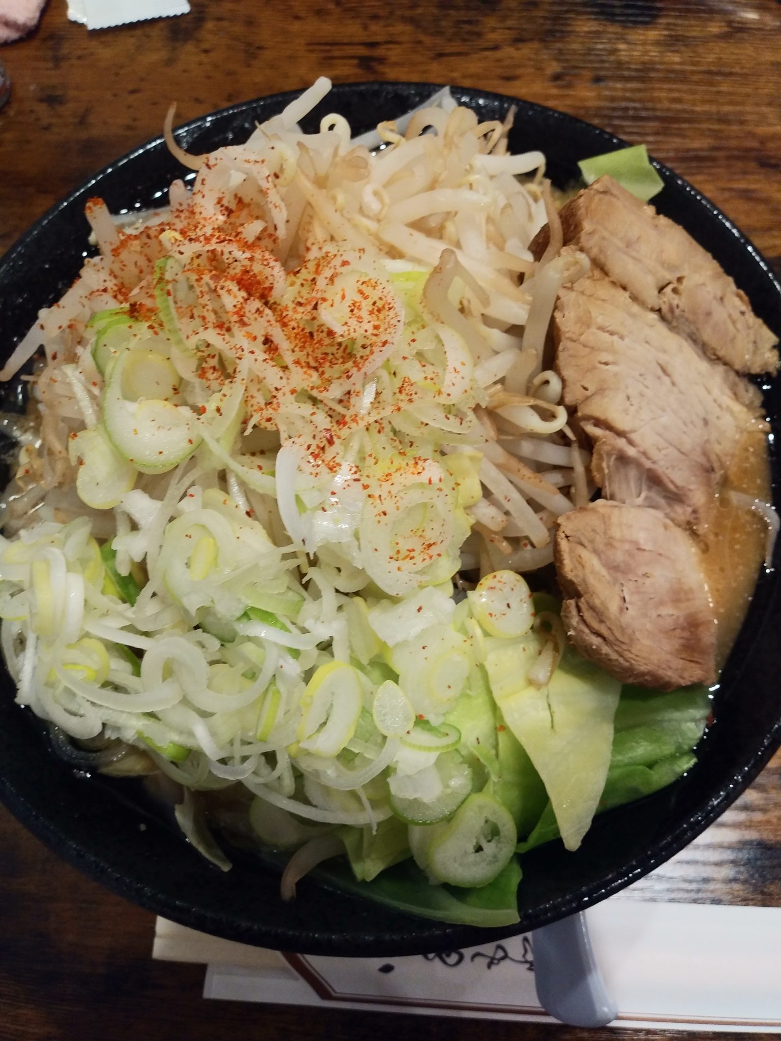 夜限定の二郎系まぜそばを頂きました。二郎系のラーメンにするとコッテリして重いかなぁと思いましたが、背脂、ニンニクの量は自分好みに変更できるのと、無料で野菜増しに出来るので、あっさりと美味しく頂くことが出来ました。野菜増しにしたので食べ応えありました。麺は太麺、チャーシューはやわらかく美味しかったです。