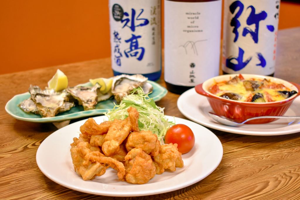 ・刺身盛り合わせ 1,000円~ ・ナスとトマトのチーズ焼き 680円 ・からあげ 600円 ※税抜き |