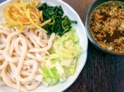 ・かけ(肉)650円 ・つけ(わかめ+天ぷら)760円 ・冷やし(きんぴら+きつね)780円 |