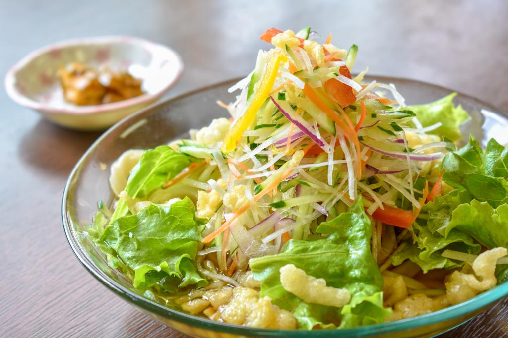 野菜たっぷりサラダうどんもおすすめ。お好みのトッピングでどうぞ♪