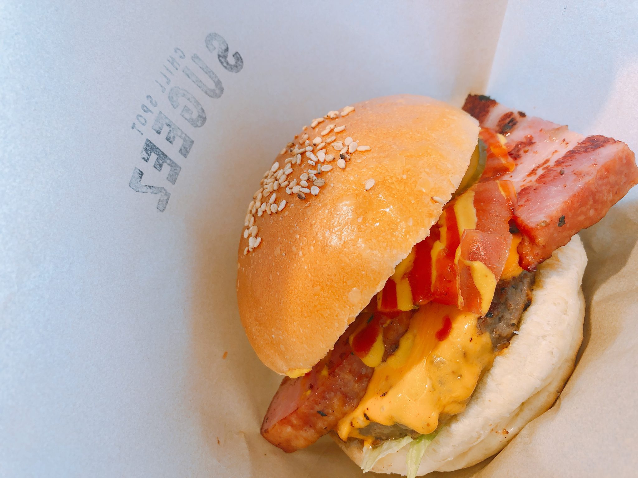 SUGEEZ burger stand(河口湖駅前店)【閉店】こだわりのハンバーガーを提供するSUGEEZの河口湖駅前店。注文が入ってからひとつひとつ丁寧に焼き上... -