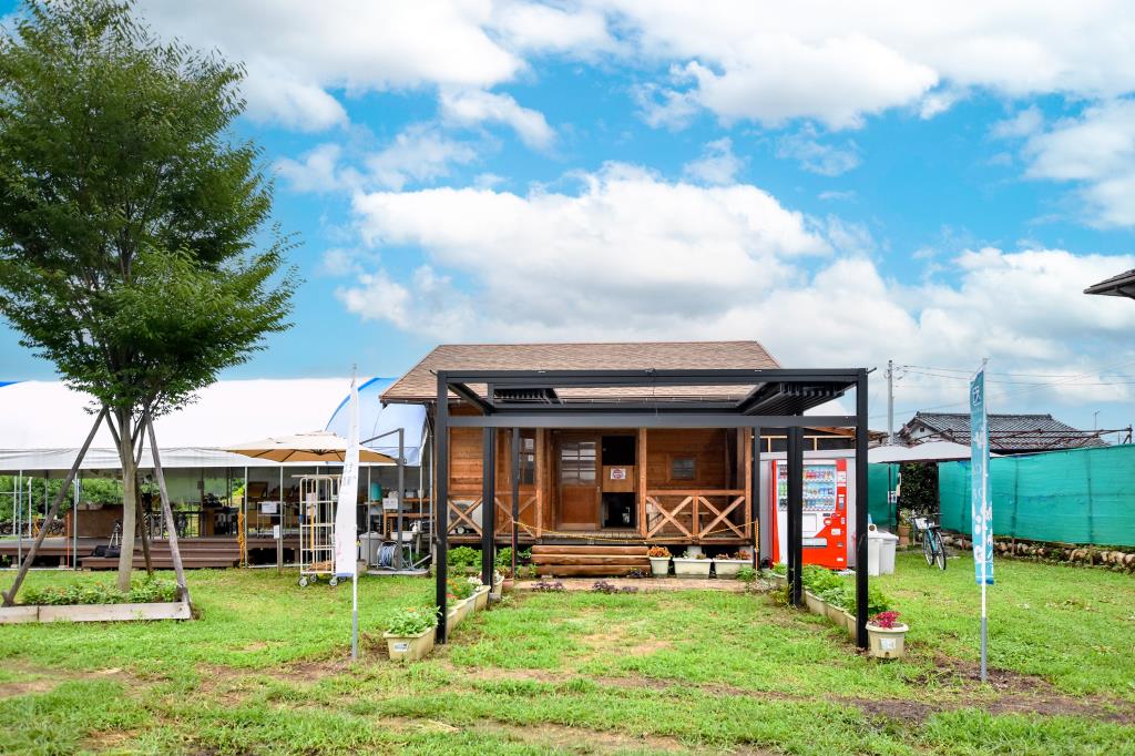 山梨市三ケ所、桃畑の中にある期間限定の農園直営のショップ。
