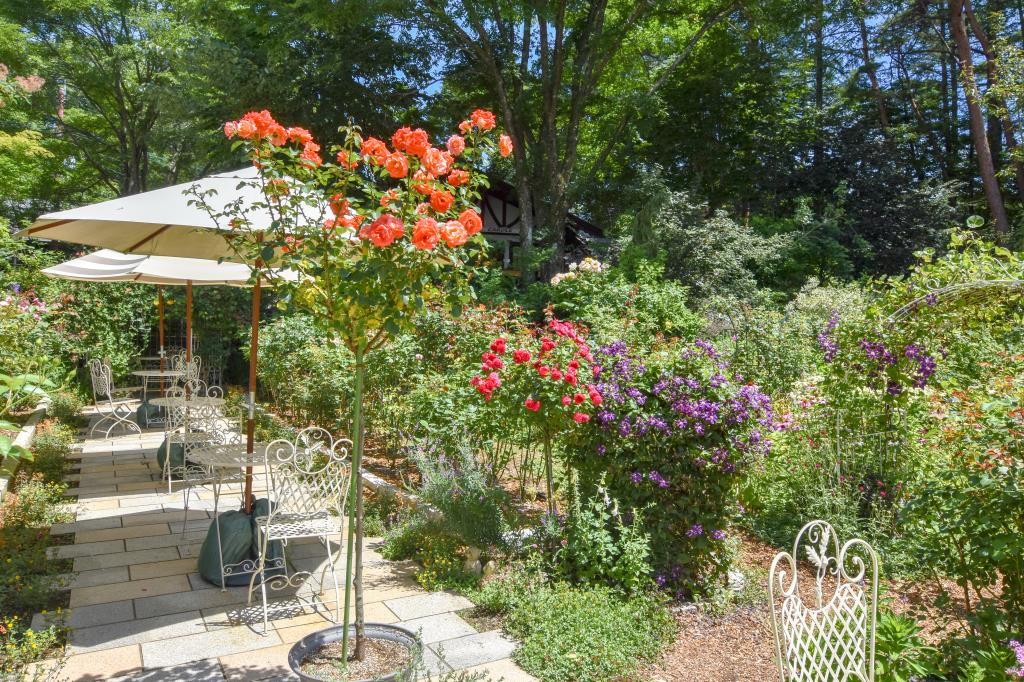 清里「萌木の村」内にある薔薇の咲くガーデンカフェ。