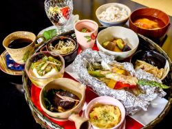 食事処 古民家やまと.富士吉田市の「古民家やまと.」のランチは8種類の小鉢が並ぶおまかせ盛り籠ランチ。野菜中心で旬の食材を...