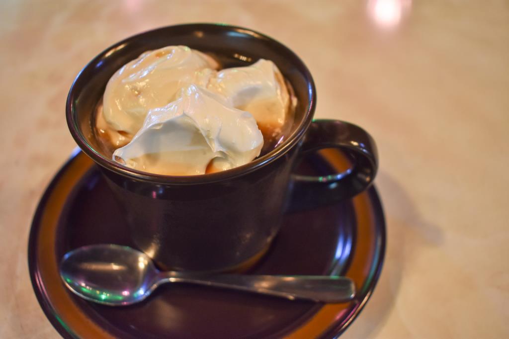 店主こだわりのウィンナーコーヒーはたっぷりの生クリームとコーヒーが相性◎