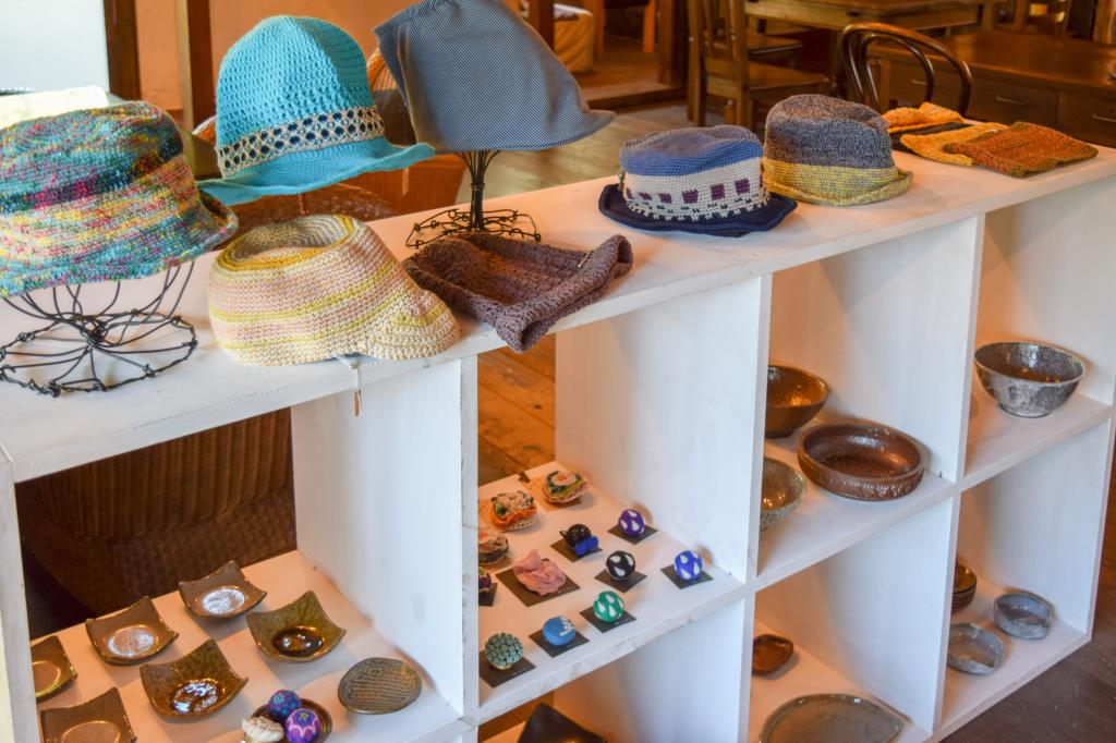 店内にはセンスのよいハンドメイド雑貨や陶器が並び、購入することも◎。