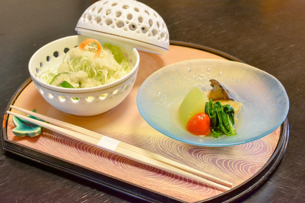 山中湖に静かに佇む笑月では伝統的な和食を五感で楽しむことができる。