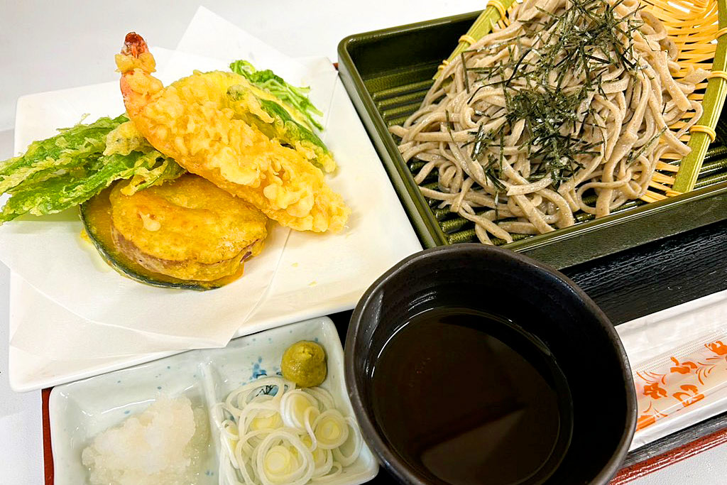<イートイン> ・自家製手打ちざる蕎麦 550円 ・天ぷらそば(温)<海老天2本> 990円 ・天盛りざるそば(冷)1,210円 ・各種定食 1,100円 <テイクアウト> ・焼肉弁当 670円 ・鶏のから揚げ弁当 594円 ・特盛りのり弁 594円 ※全て税込 |