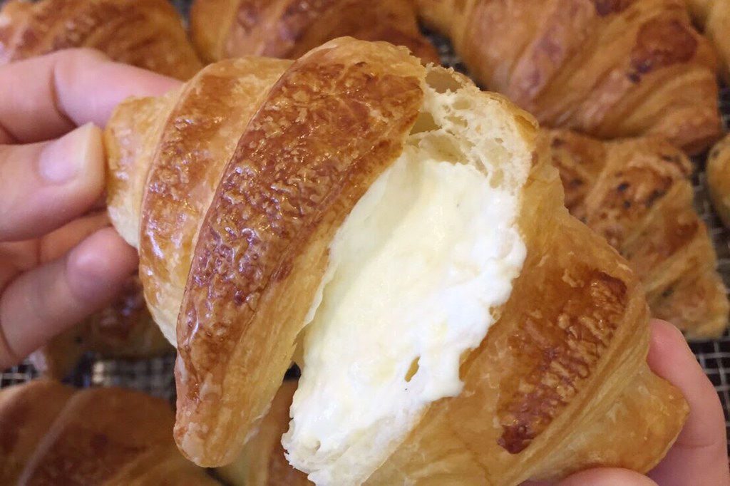 注文してからクリームを詰めてくれる、シュークリームクロワッサンは絶品☆