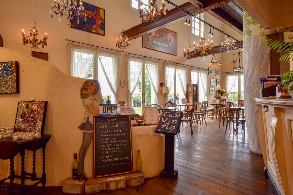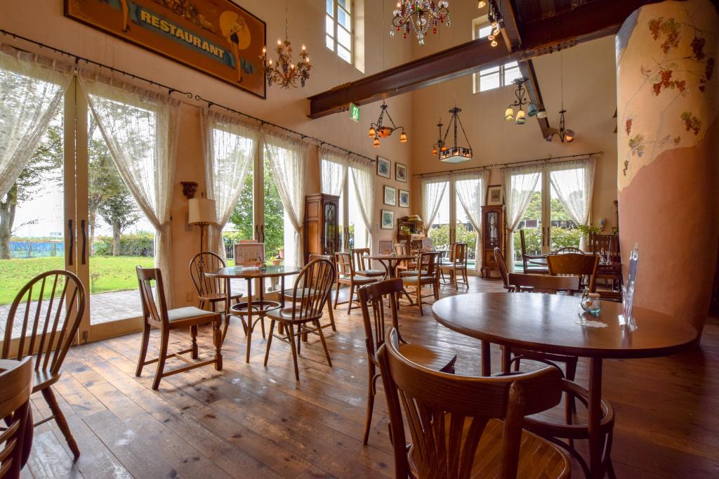 ヨーロッパのアンティーク家具が並ぶ店内からは葡萄畑を見渡せるというなんとも贅沢なロケーション♡