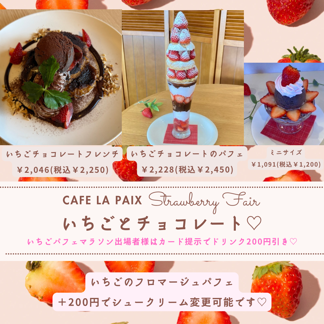 いちご好きの皆様、ぜひCAFE LA PAIXで癒しのひと時をお過ごしくださいませ😊