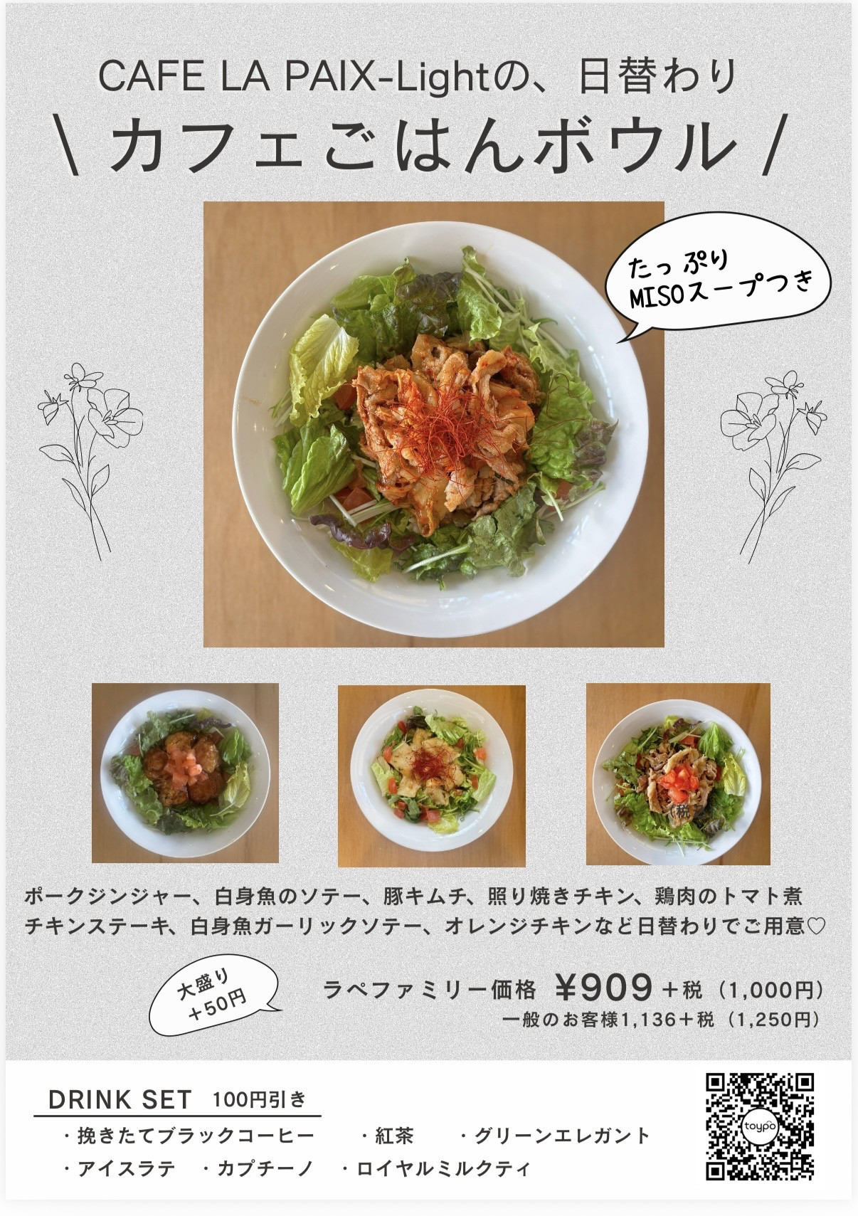 いつもご愛顧いただきありがとうございます✨️ Light店本日営業日♡ ランチはカフェごはんボウル、カフェごはんプレート ご用意しております♡ 本日は白身魚の香味野菜焼き、テリヤキチキ...