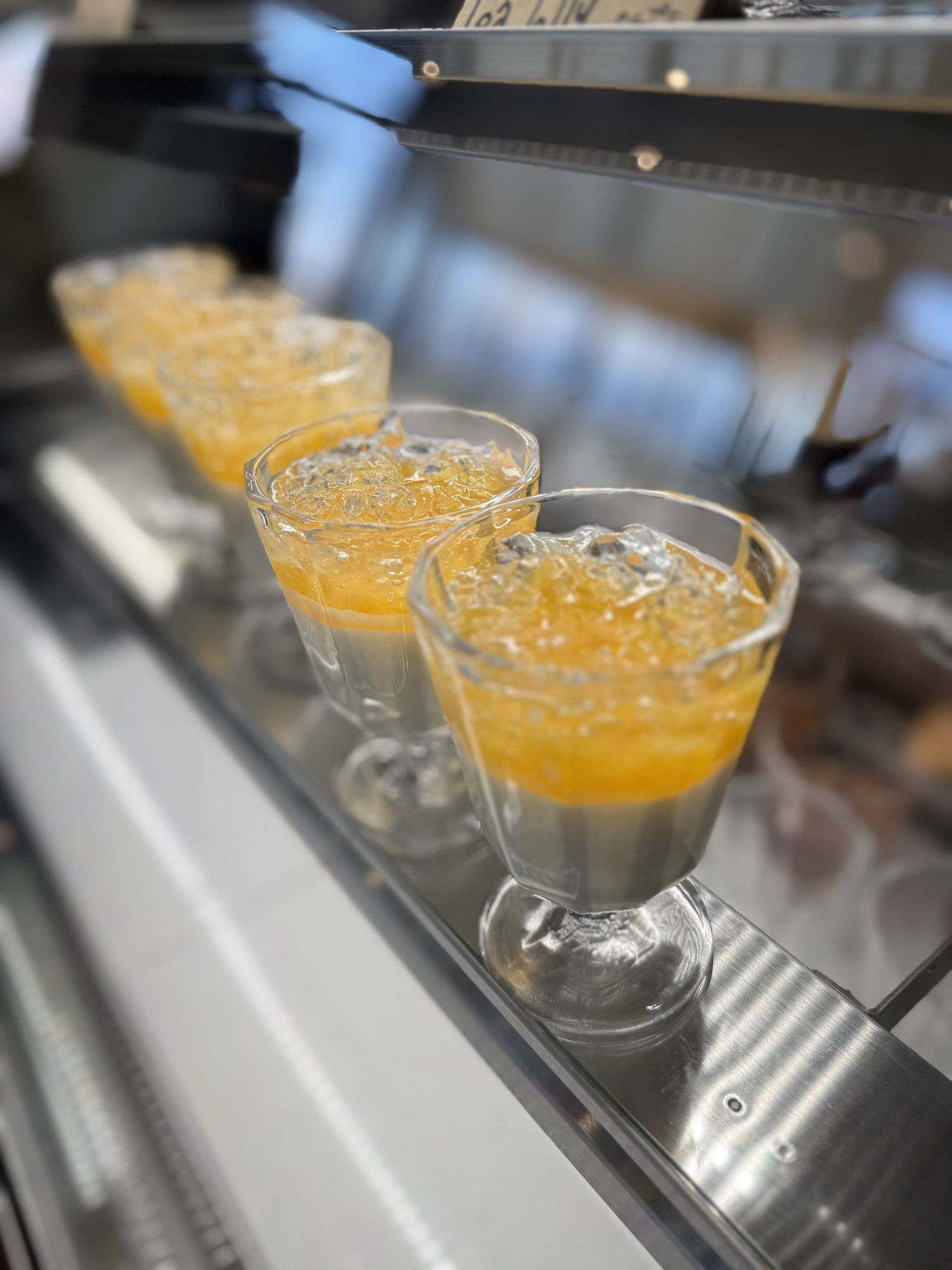 ティータイムはグラススイーツ紅茶ゼリー、コーヒーゼリーご用意しております。デザートタイムもごゆっくりお楽しみくださいませ♡