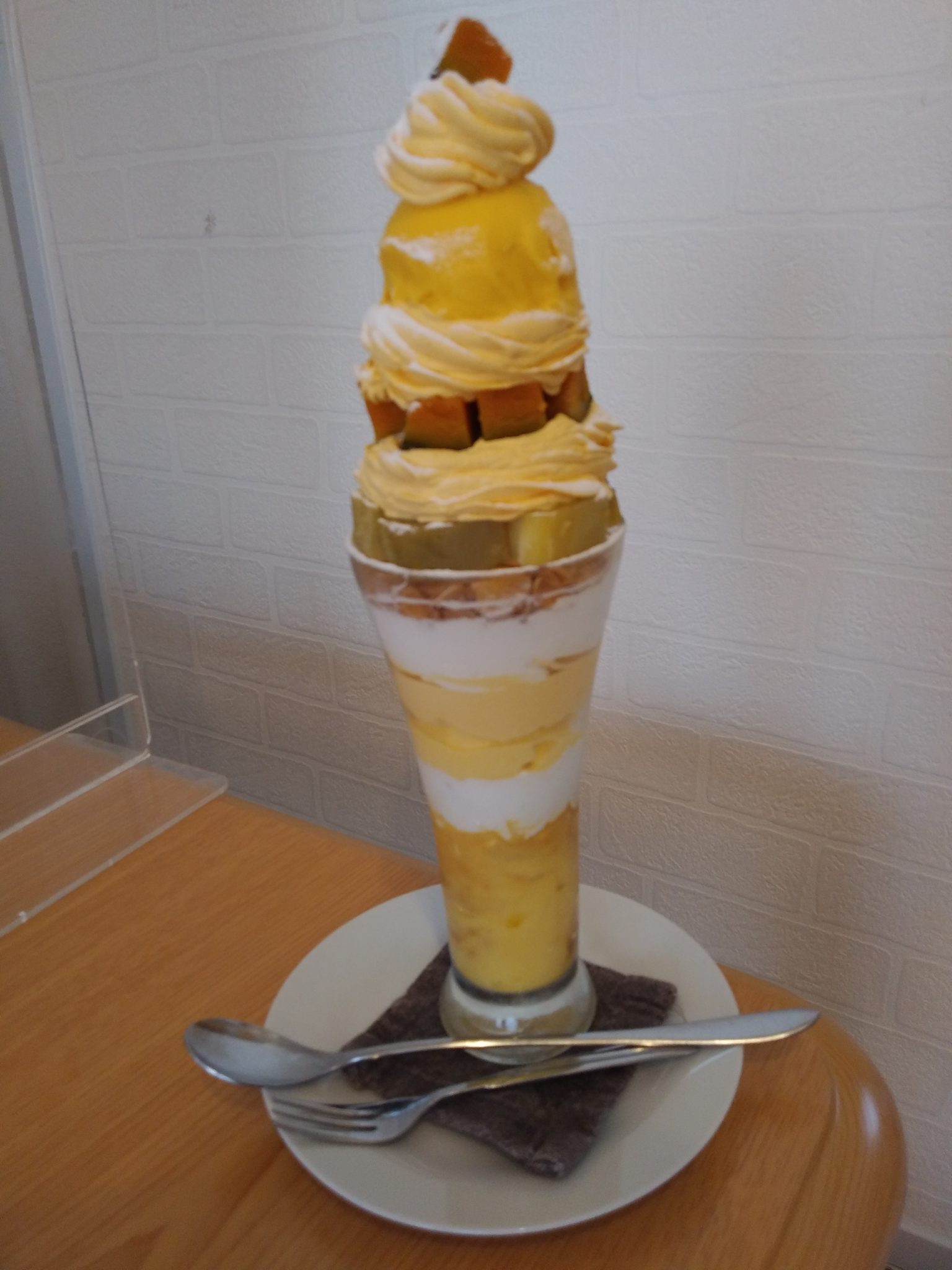 カボチャのクリーム、薩摩芋のアイス、卵液によく浸されているフレンチトースト、全てが美味しかったです。いちごパフェ 2021年10月19日 -