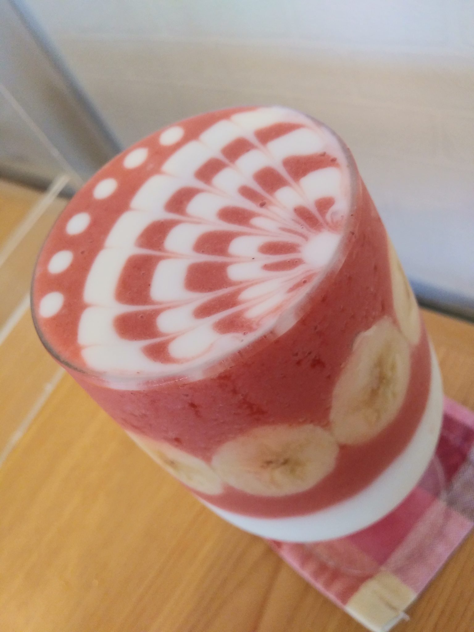 パフェやフレンチトーストが本当に美味しいお店です。14時から注文出来るアートスムージーを飲んでみました。味は苺とブルーベリーから選べます。食べるのが勿体ないルックスです。バナナがけっこう入っているので、その甘さと、ベリーの酸味が効いたスムージーで美味しかったです。