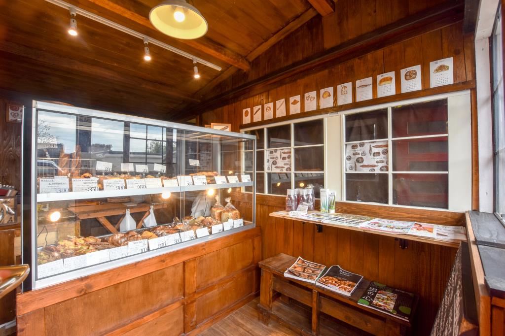店内には、種類豊富な手作りパンがずらりと並べられている。