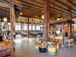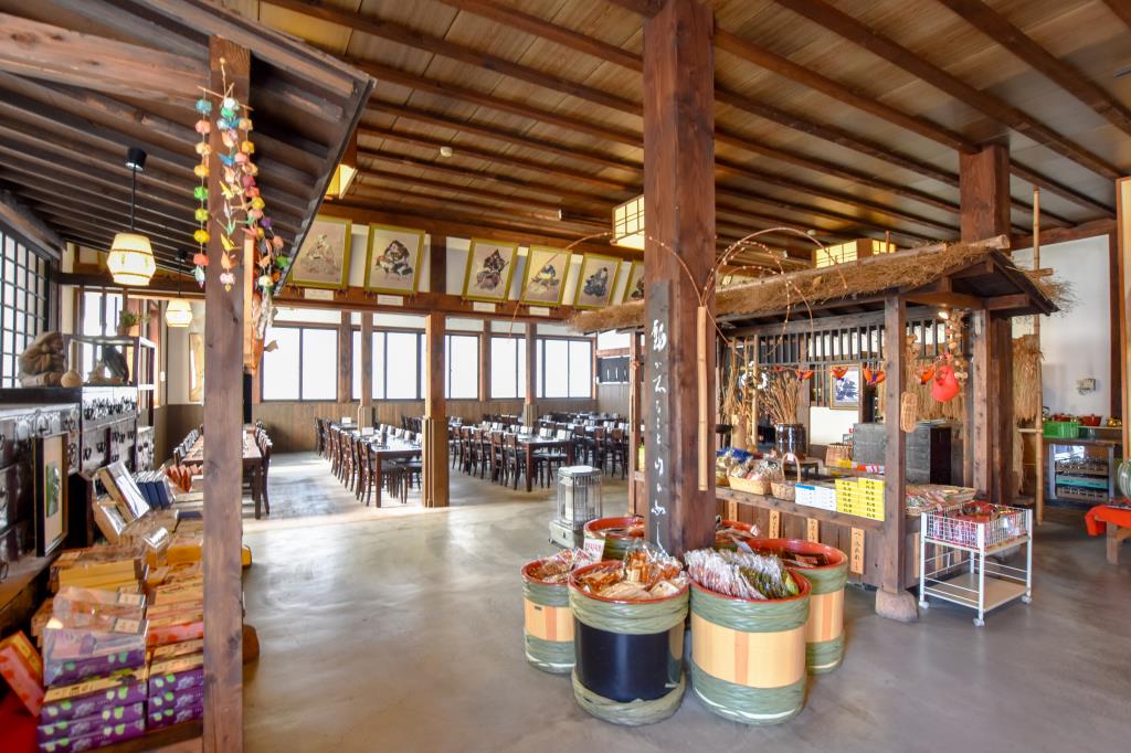 木のぬくもり溢れる日本伝統の蔵造りの店内は、自然光を最大限に生かし、広々と開放的で落ち着ける雰囲気となっている。雄大な美しい富士山を目前に自慢のほうとうをいただける。