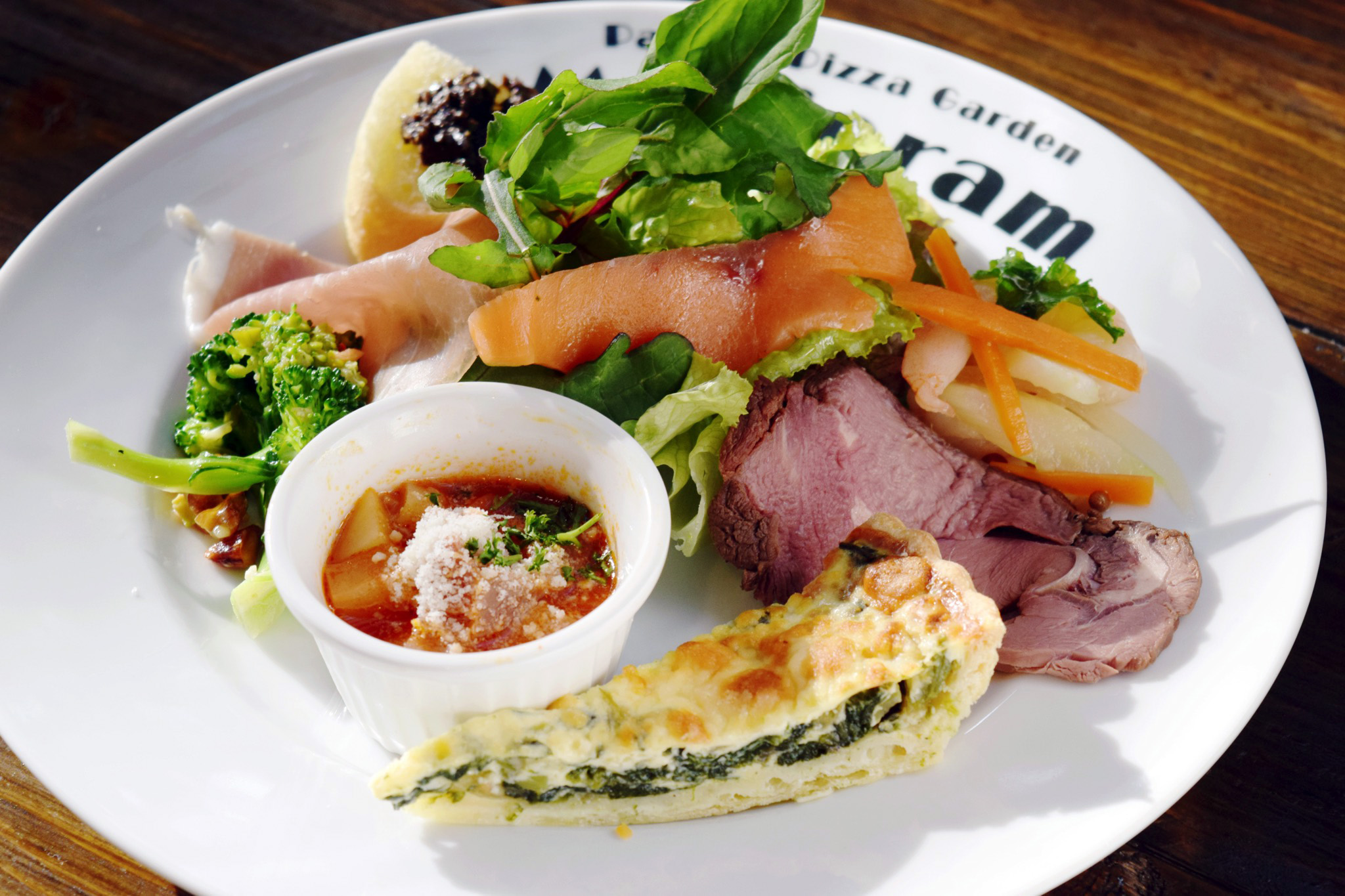 ・前菜盛合せ 880円 ・スパゲティベルデューラ 1,030円 ・ピザ マルゲリータ 1,180円 ※全て税別 |