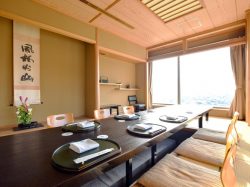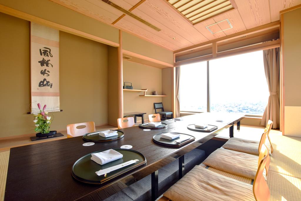 甲府の街を見下ろす甲府記念日ホテル内13階の日本料理レストラン。