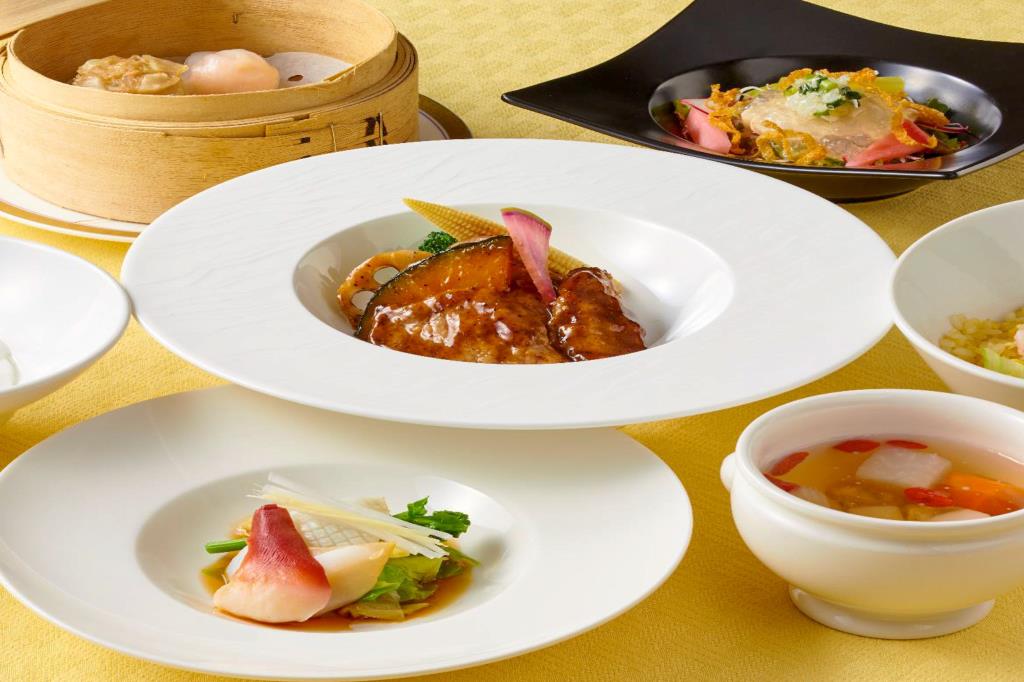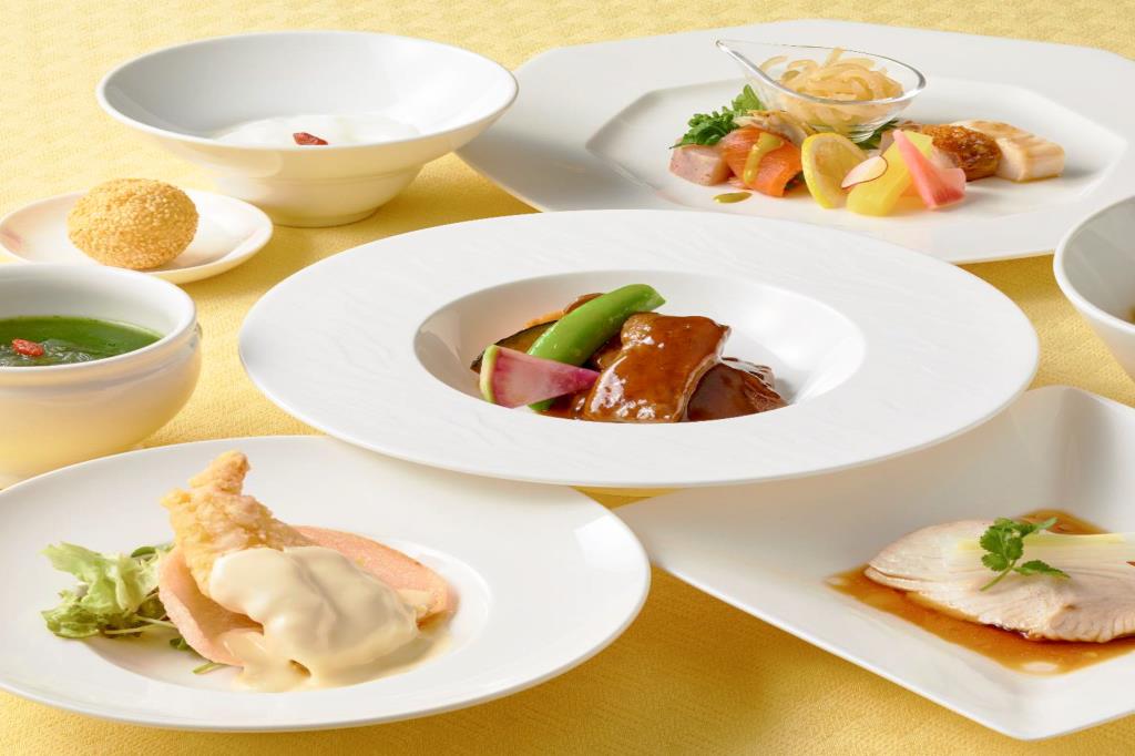 西洋と和の食材を中国の技法で調理したコース料理は見た目も美しく、様々な席で人気を博している。