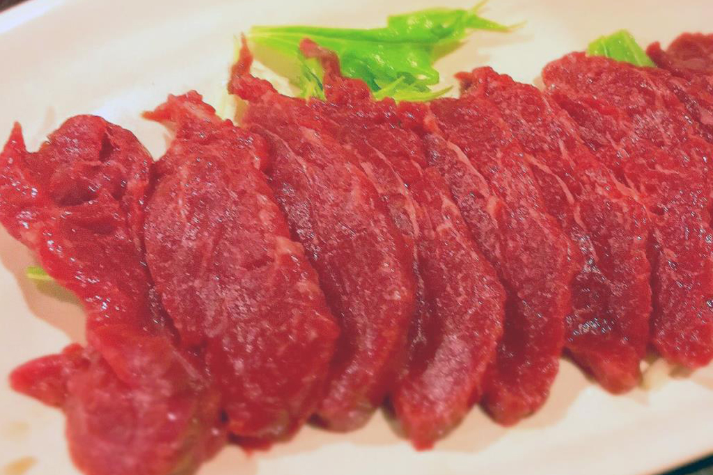 山梨名物の甲州馬刺し、馬レバー刺し、さくら肉めしをはじめ、食事のメニューが豊富。