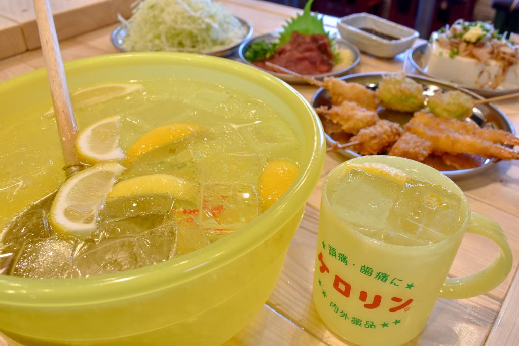 目玉メニューはその見た目にびっくりの「けろりん桶酒」!銭湯でよく目にする桶に、大ジョッキの2.3倍の酒が入った桶酒!どこか懐かしい雰囲気の大衆酒場だから皆でわいわい呑むもよし、1人でしっぽり呑むもよし!