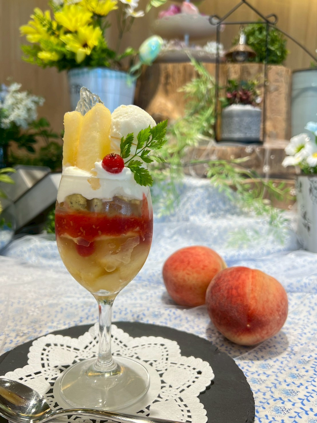 桃の在庫終了次第、パフェも終売となりますので、