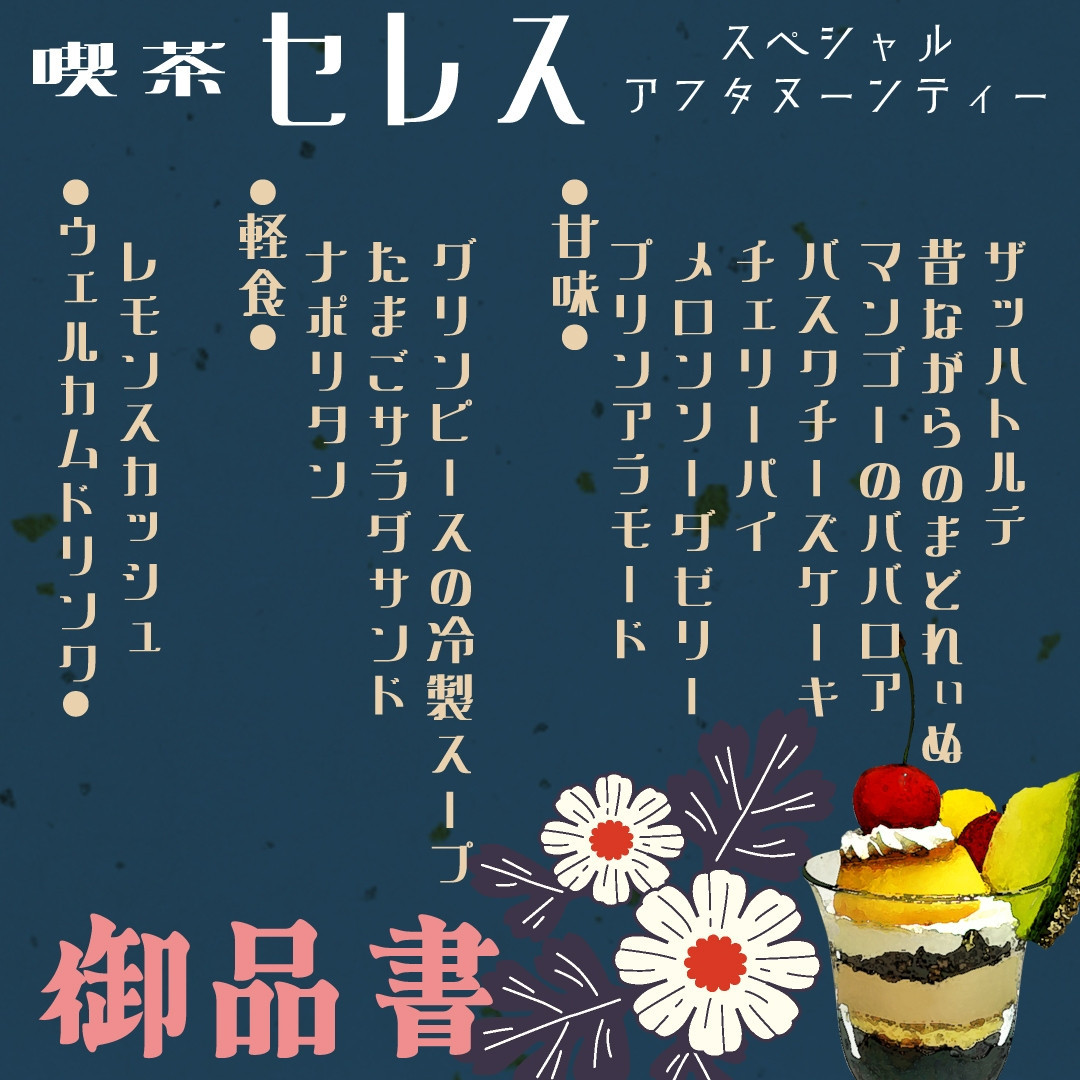 本日は 【期間限定】 夏のアフタヌーンティー 情報公開です♬ ※完全予約制となります※ ::::୨୧::::::::::୨୧:::: 〖 喫茶 セレス 〗 昔懐かし... -
