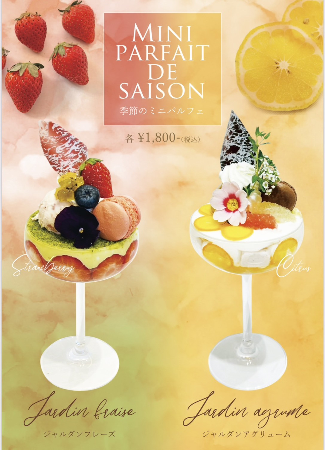 セレスカフェでは季節の果物など 使用したパフェを提供中です! 現在は ・ジャルダンフレーズ(苺のパフェ) ・ジャルダンアグリューム(柑橘のパフェ) の2種をご用意しております♬ ご...