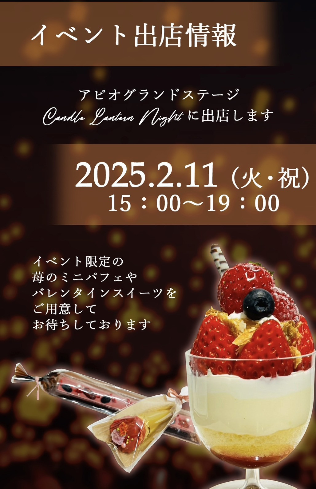 2月11日(火)はアピオ甲府の 大きなチャペル前でイベントがございます! セレスカフェの店舗営業はお休みの日ですが、 15時~19時の間、 イベント会場の販売ブースにて、 イベント限...