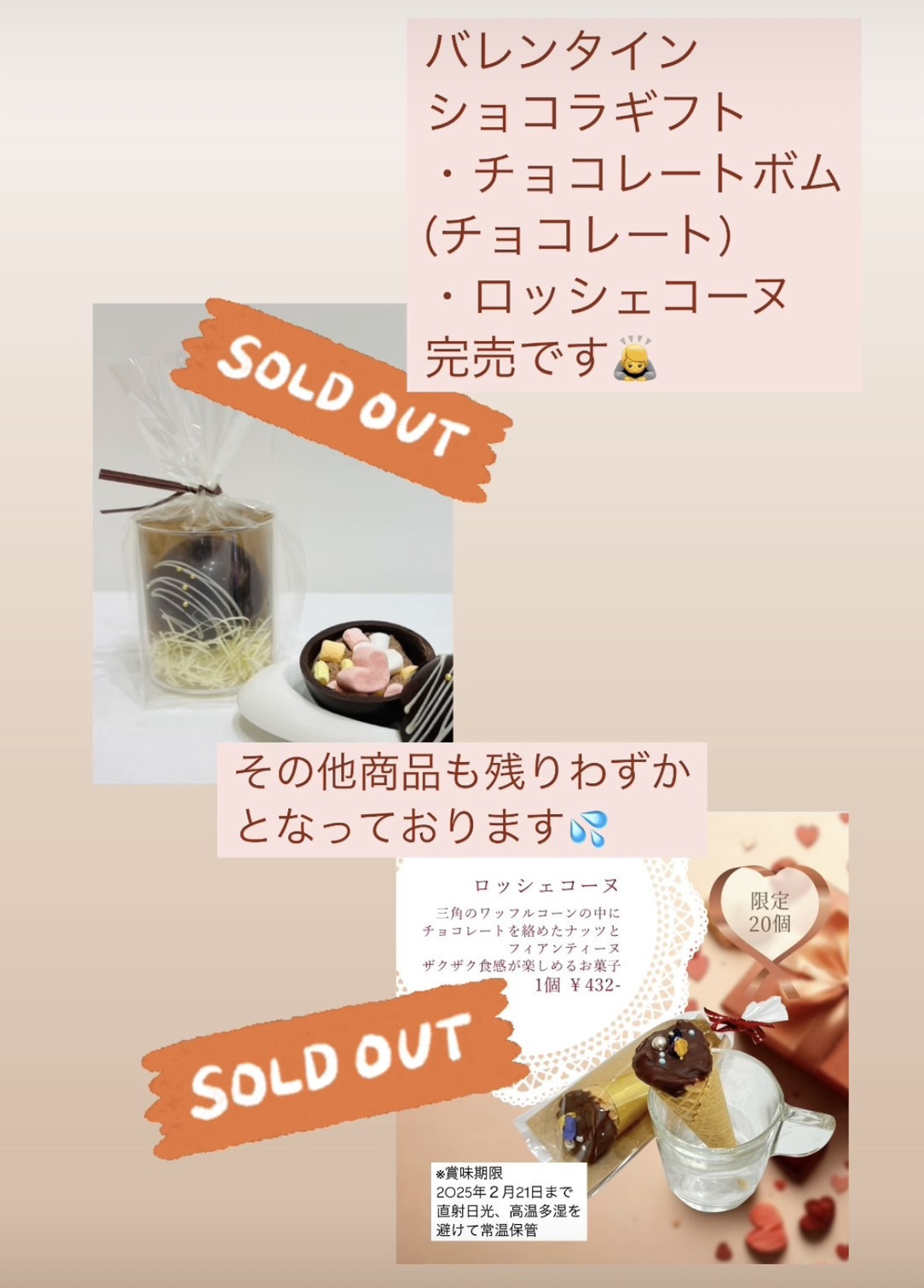 一部商品が完売のお知らせです。